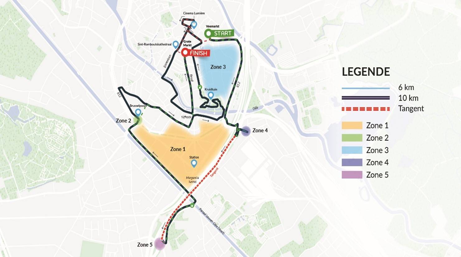 • Het station van Mechelen ligt op 20 minuten wandelen van de inschrijvingszone en de start.